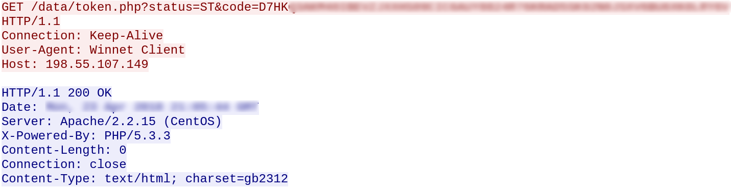 The Trojan reports the infection to a C&C server: