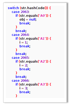 A major addition in the new variant is how he attacker communicates with the malware post infection. Commands are sent by the attacker which follow the code A like A0,A1 and so on. For every such code there is a case which determines what the malware should do: