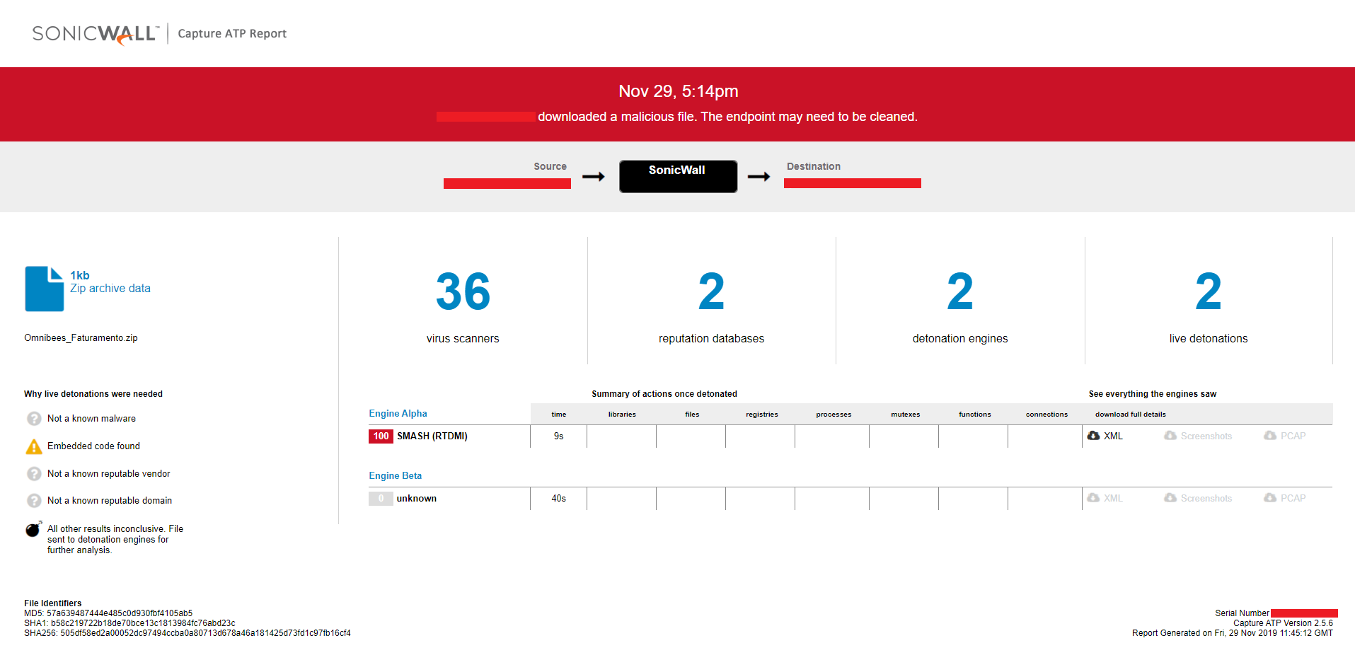 Evidence of the detection by RTDMI(tm) engine can be seen below in the Capture ATP report for this file: