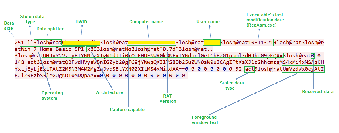 The malware receives data from C&C server, contains commands, sub-commands and necessary data which is separated using the delimiter “3losh@rat”.