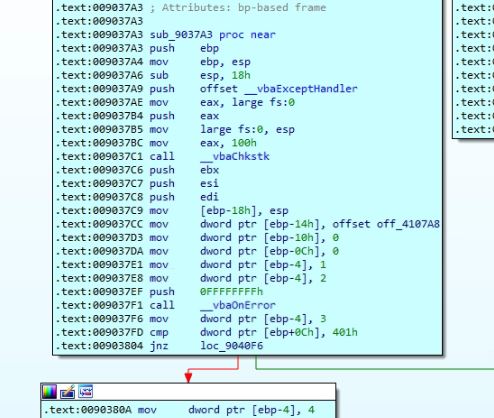 The Visual Basic compiled DarkMe RAT executable is highly obfuscated to make analysis of the file more difficult. While debugging, the malware makes the analyst go through the obfuscation code inside each module or function call.