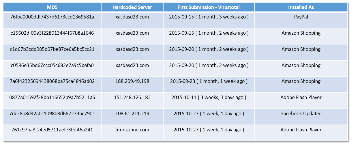 • Based on Virustotal data these apps seem to be fairly new with the oldest one being a month and few weeks old: