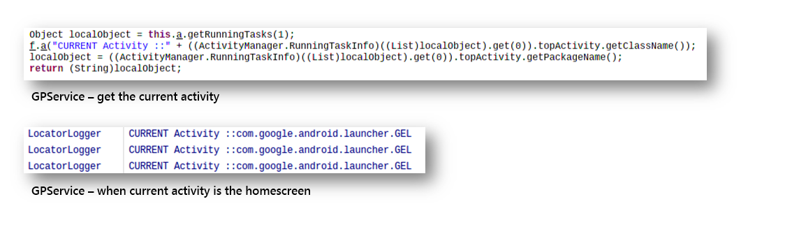 Every malware in this campaign has a service named GPService running in the background. The sole objective of this service is to monitor the current activity running on the screen: