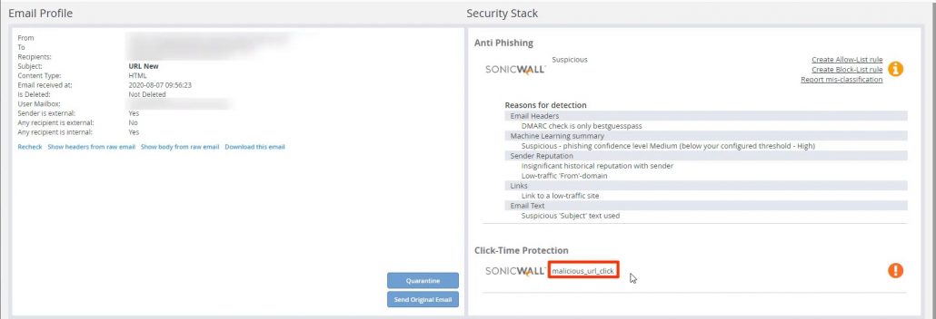 You don’t have to wonder anymore — SonicWall is excited to announce that Cloud App Security now provides even more URL protection straight out of the box. In addition to pre-delivery email URL analysis, Cloud App Security now includes Click-Time Protection to block URL access to sites that were initially benign but are now malicious.