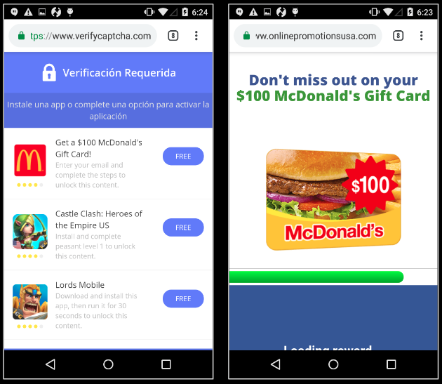 The app starts displaying survey links which aim at extracting credit-card and other sensitive details from the users.