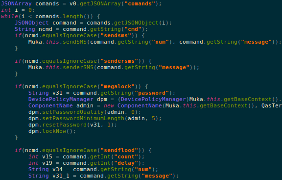 In order to execute few commands mentioned above, the malware needs device administrator privileges. The following code shows the custom message used by the malware to trick users to grant that privilege: