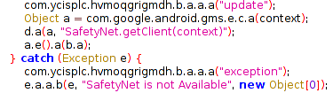The application also checks if SafetyNet is active on the device: