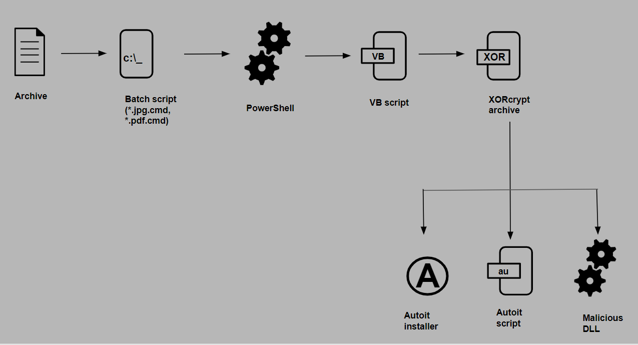 The archive files seem to carry a batch script in the name *.jpg.cmd or *.pdf.cmd