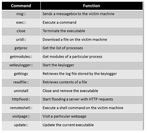 The Malware communicates with the C&C server through HTTP where the commands to be executed are present in the response messages. During our analysis we observed the following commands present in the code: