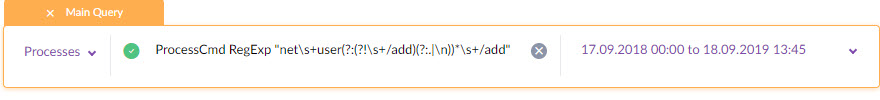 For example, users can search for a common “Living off the Land” technique by running a query across a 12-month period to return every process that added a net user: