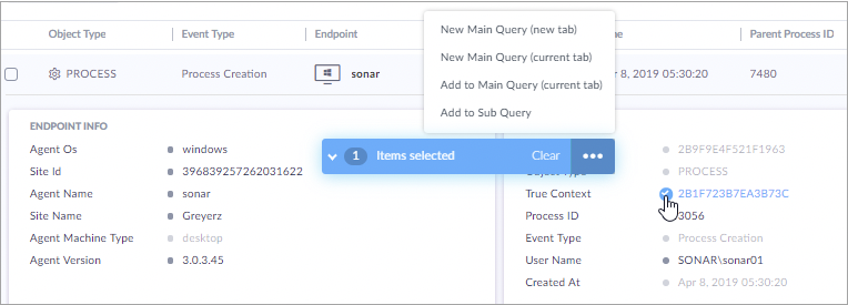 Deep Visibility query results show detailed information from all your endpoints, displaying attributes like path, Process ID, True Context ID and much more.