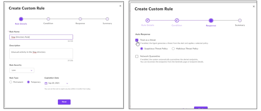 With Storyline Automated Response (STAR) Custom Rules, you can save Deep Visibility queries or define new ones, let the queries run periodically and get notifications when a query returns results. This helps ensure your organization is secure regardless of whether you or your team are on duty.