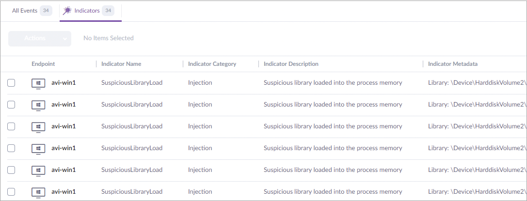 For example, you could search your entire fleet for any process or event with behavioral characteristics of process injection with one simple query: