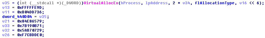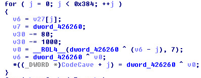 After the buffer is created it will decrypt and copy code into the code cave: