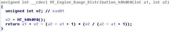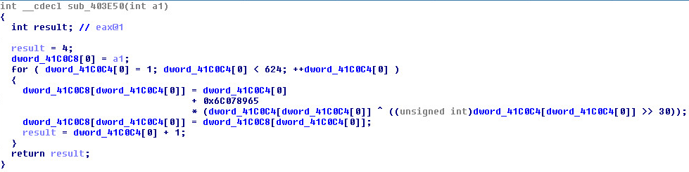 First Call To MT, the byte_419000 is the character array in which the Mersenne Twister Engine is used on: