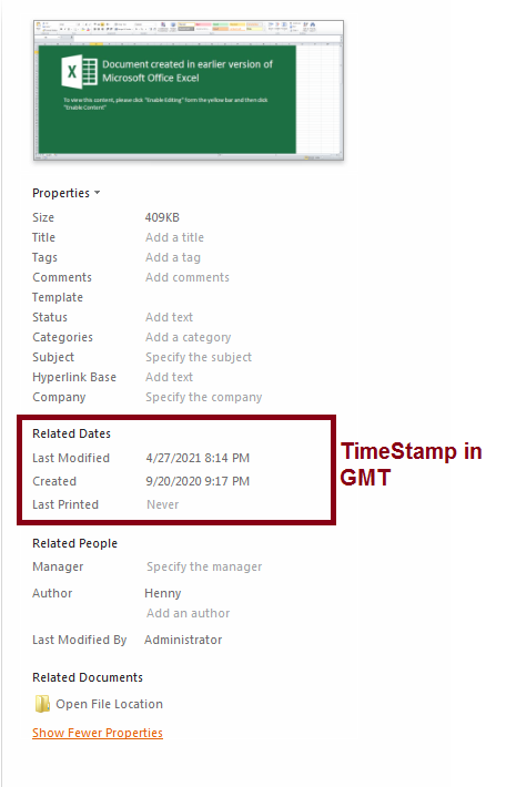 File properties indicate that the sample was created on 20-Sep-2020 and modified on 27-Apr-2021 8:14 pm (UTC) as shown below.