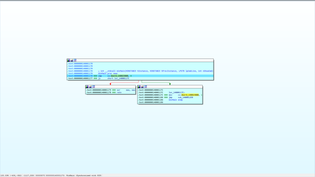 Conversely, if the DWORD value is already set to one, the ransomware promptly terminates its execution without initiating any malicious operations.