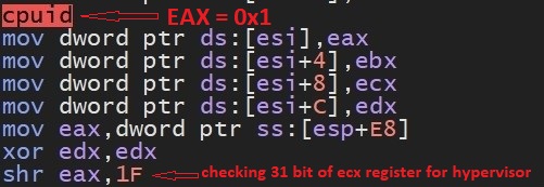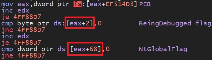 It has one unique check , where it initially set cx = 2. After performing some instruction it checks if cx is still equal to 2. Since cx value should remain the same. The gs selector's value would be reset by a single step event and a new value would be placed into cx at the end of the procedure.