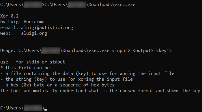 exec.enc is decrypted using the built-in Windows certutil program and exec.exe is created.  It is a non-malicious generic Xor encryption tool by Luigi Auriemma: