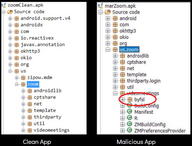 We saw few instances where the Android Remote Administration Tool (RAT) DroidJack embedded apps were named as Zoom.