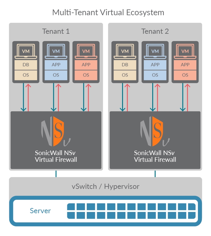 NSv is easily deployed and provisioned in a multi-tenant virtual environment, typically between virtual networks (VN). This allows it to capture communications and data exchanges between VMs for automated breach prevention, while establishing stringent access control measures for data confidentiality and VM safety and integrity.