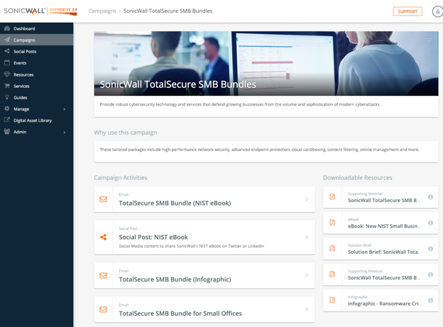 SonicWall Overdrive 2.0 packages content and resources partners can leverage as part of one-off marketing efforts or fully integrated campaigns.