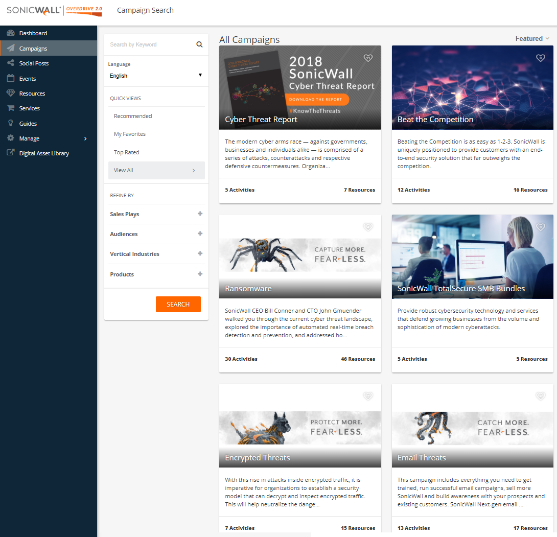 SonicWall Overdrive 2.0 is a remarkable resource stocked with modern, appealing and relevant content to help MSPs and MSSPs generate demand and close more business.