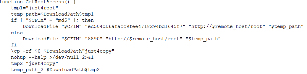 It downloads a number of component files which in turn uses a privilege escalation vulnerability in Linux known as Dirty Cow (CVE-2016-5195) to provide the Trojan root access privileges.