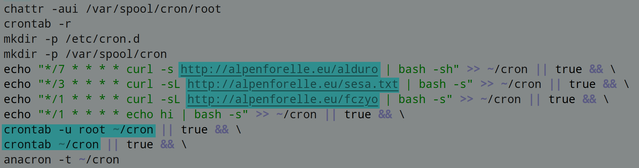The SonicWall Capture Labs threat research team have read reports of a set of malicious scripts, still live online at the time of writing, that install crypto mining software on Linux servers. There are 3 scripts: fczyo, alduro and sesa.txt. Each script is responsible for different aspects of getting the mining software up and running. They make every effort to disable various security features that may be present on the system. They also configure a backdoor for access by its operators at a later time.