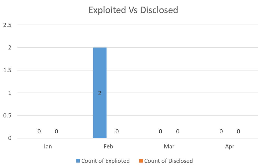 Microsoft tracks vulnerabilities that are being actively exploited at the time of discovery and those that have been disclosed publicly before the Patch Tuesday release for each month. The above chart displays these metrics as seen each month.