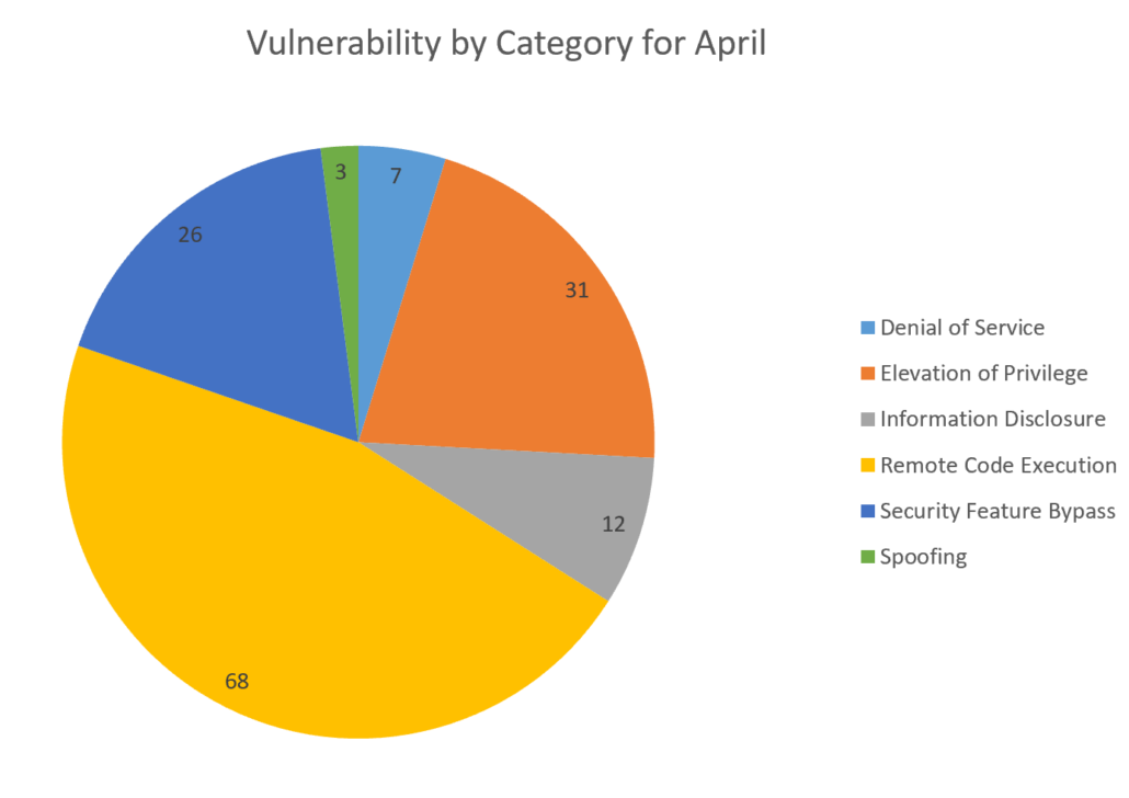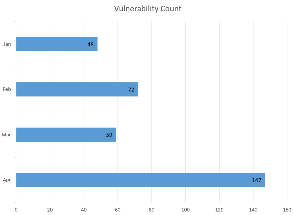For April there are 142 critical, 3 Important and 2 moderate vulnerabilities.