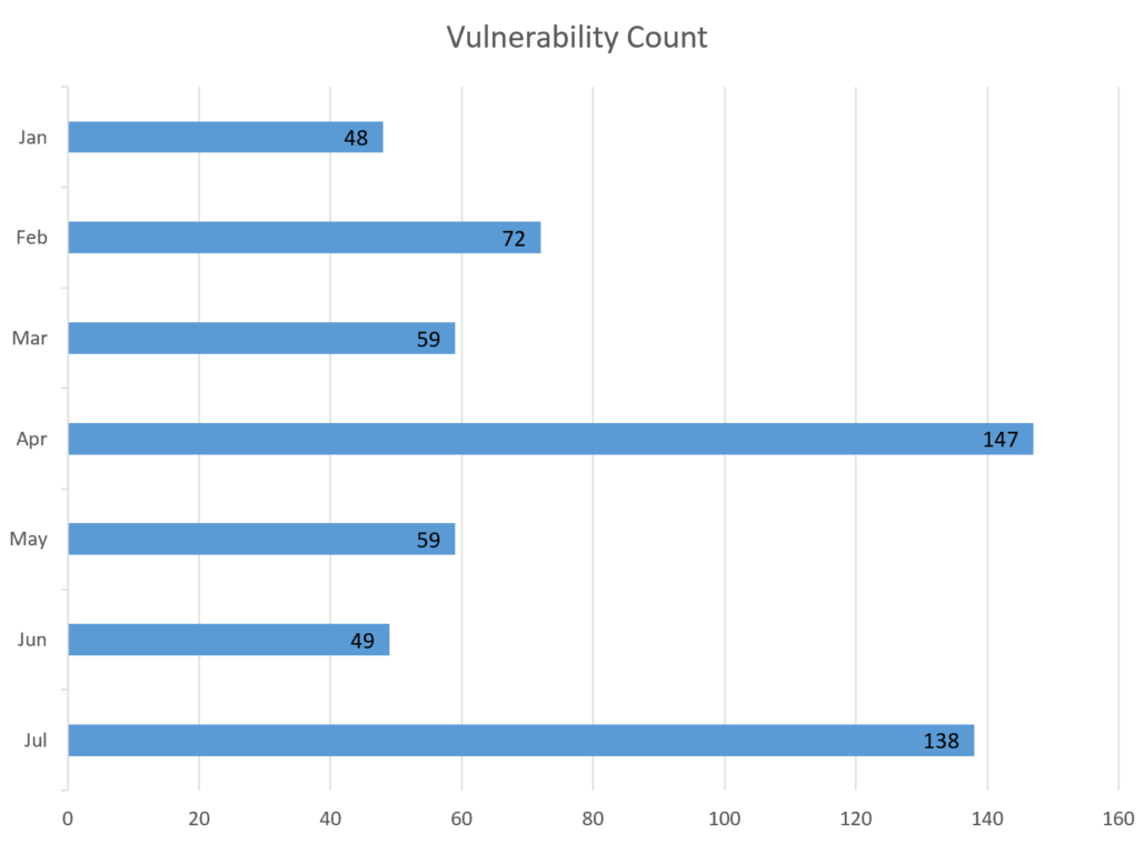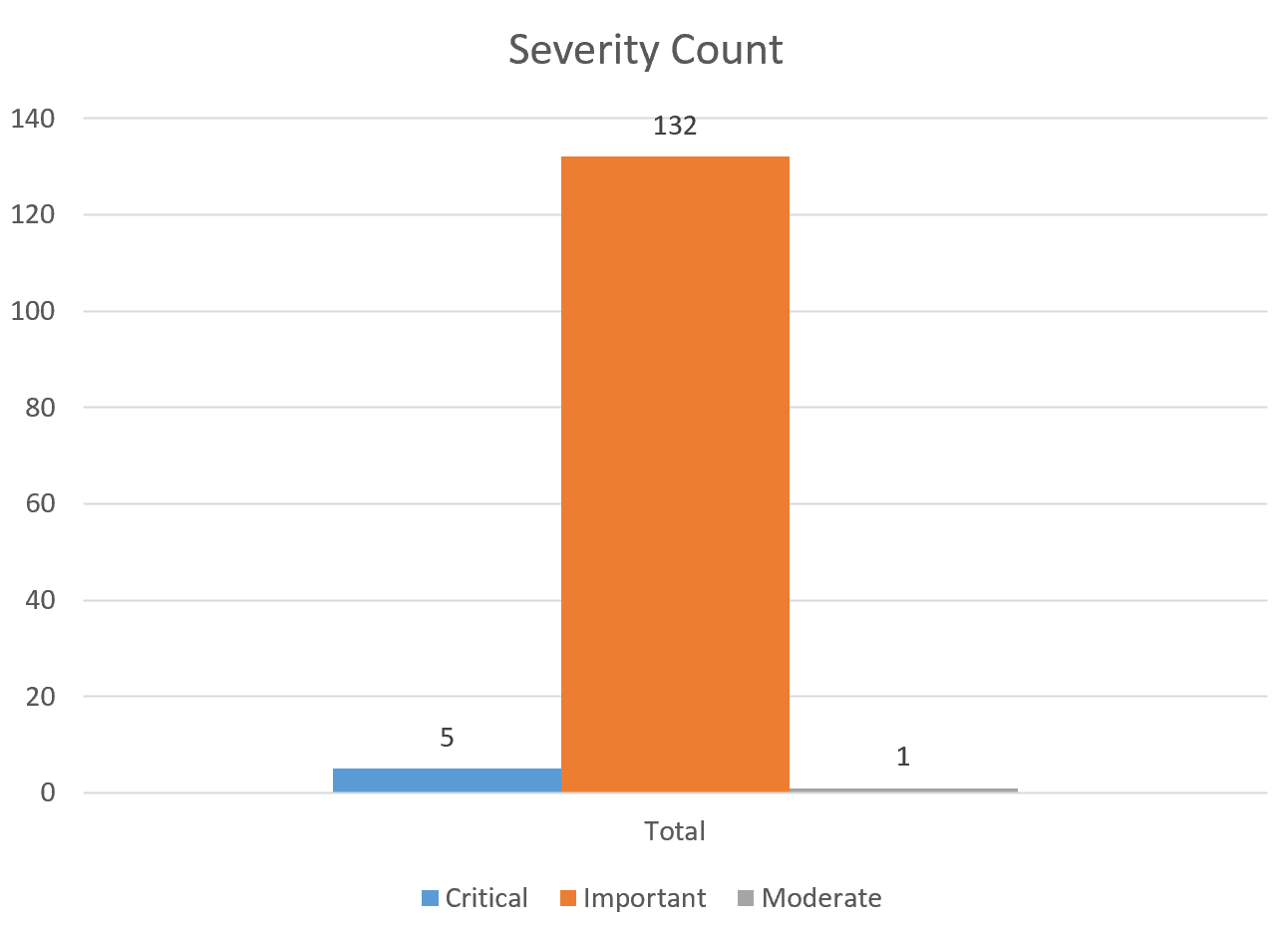 For July there are 5 critical, 132 Important and one moderate vulnerabilities.