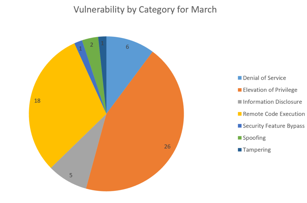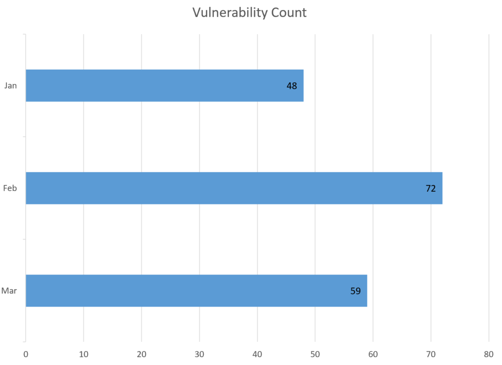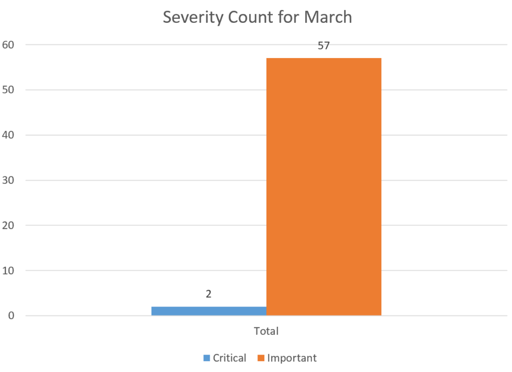 For March there are 57 critical, 2 important and zero moderate vulnerabilities.
