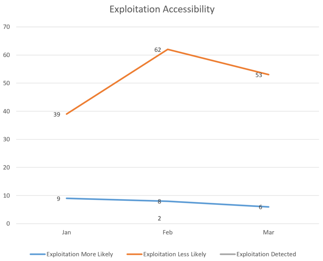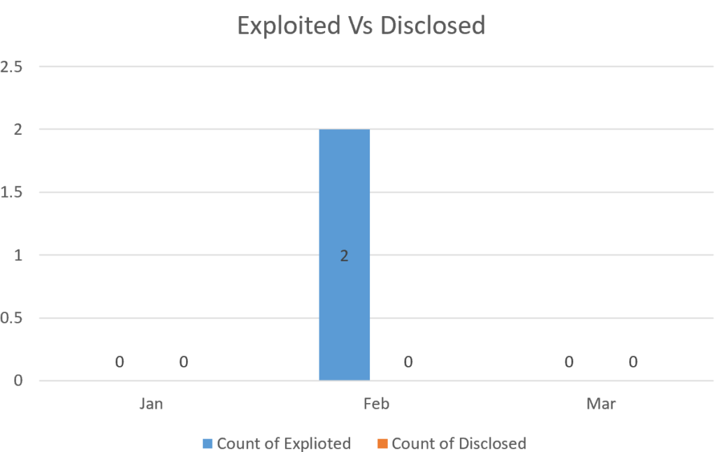 Microsoft tracks vulnerabilities that are being actively exploited at the time of discovery as well as those that have been disclosed publicly before the Patch Tuesday release for each month. The chart above displays these metrics as seen each month.