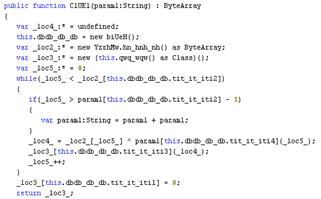 Finally, we can see the exploit code for CVE-2015-5119 that resides inside the inner SWF file. This exploit uses the valueOf property on a ByteArray: