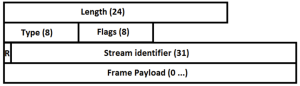 Type: The 8-bit type of the frame ((e.g. 0x0 DATA, 0x1 HEADERS, 0x5 PUSH_PROMISE, 0x6 PING)