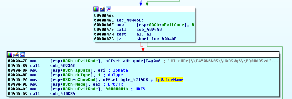 The NetWire RAT keeps the old code which is disabled in the current variant by setting flag values. Disabled old code includes decryption of strings and persistence registry entry into "HKEY_CURRENT_USER\Software\Microsoft\Windows\CurrentVersion\Run":