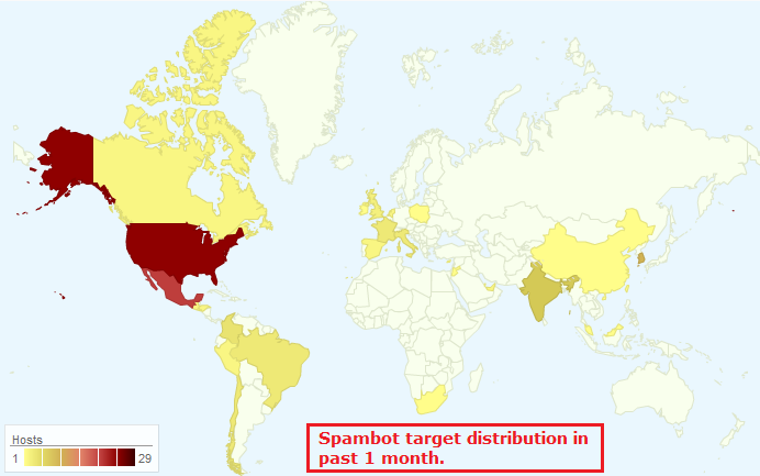 The following HeatMap shows the geographic distribution of this attack: