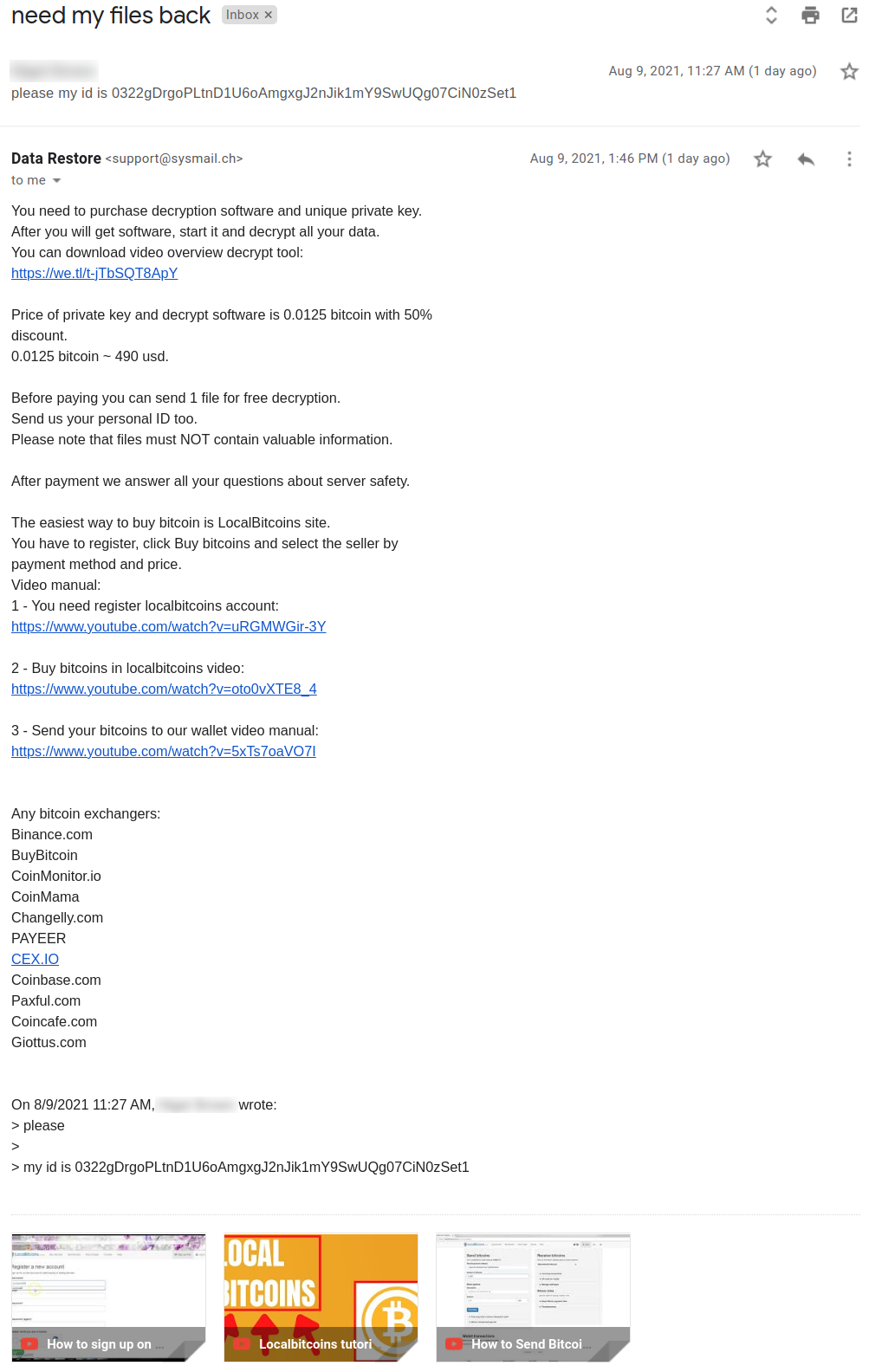 We reached out to the email addresses provided in the ransom message and received the following response: