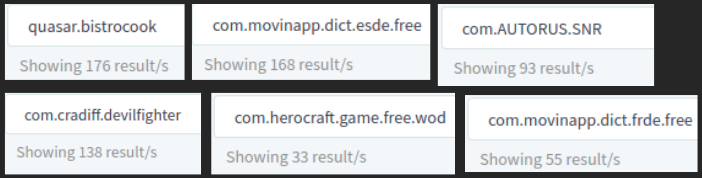 The apps belonging to this campaign use different package and app names, among the samples we observed for the last few weeks few package names repeated a number of times. A quick search on the Android malware collaboration portal Koodous gives us results for a high number of samples from this campaign, below image shows the number of results for apps with a particular package name: