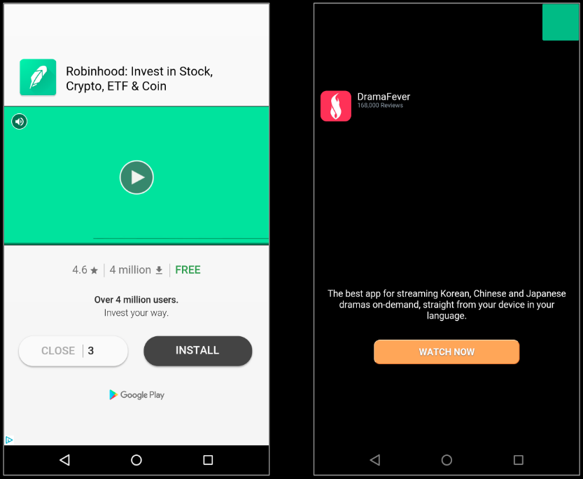 Once the jar file is saved, the network activity on the device multiplies and we start seeing heavy advertisement related traffic, soon enough we saw full screen advertisements pop up regularly on our infected device: