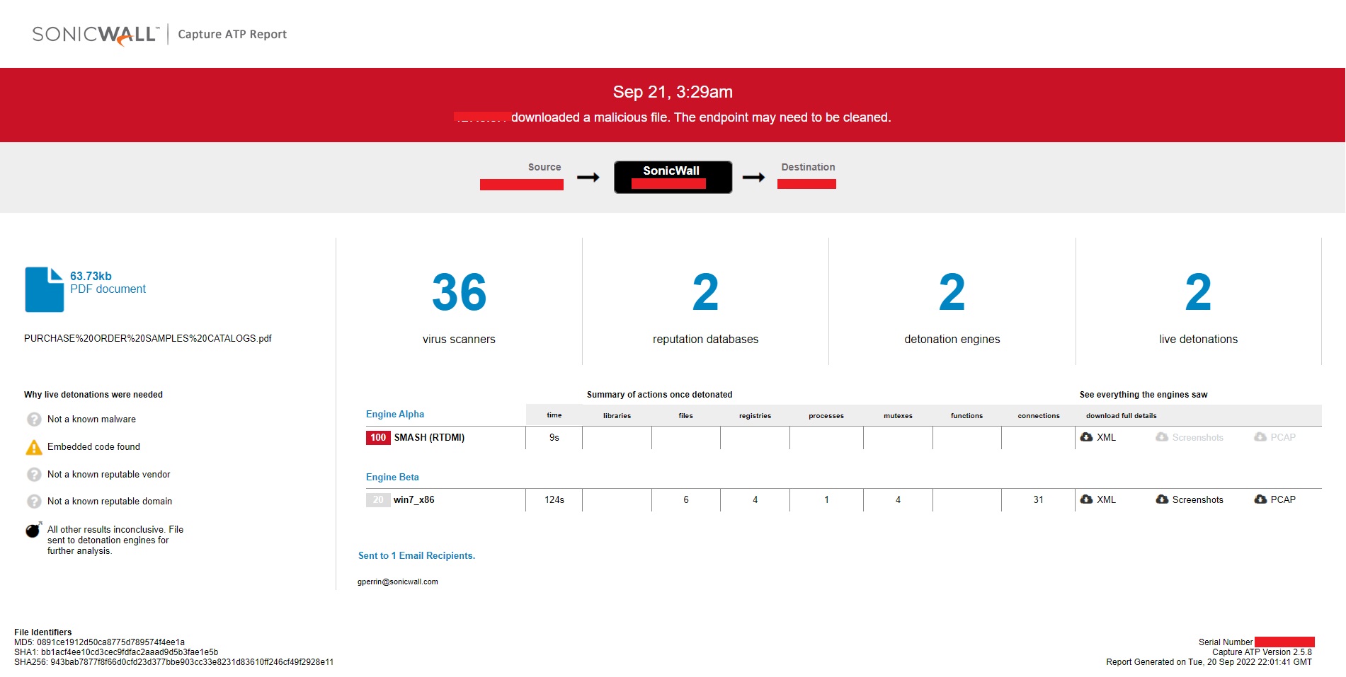 Evidence of detection by RTDMI ™ engine can be seen below in the Capture ATP report for this file: