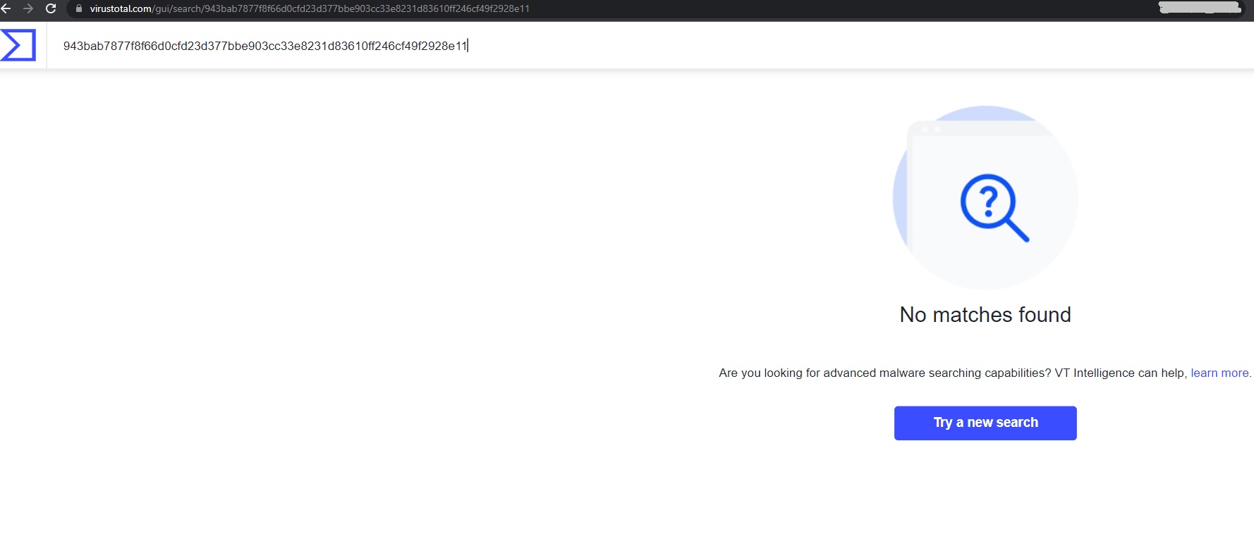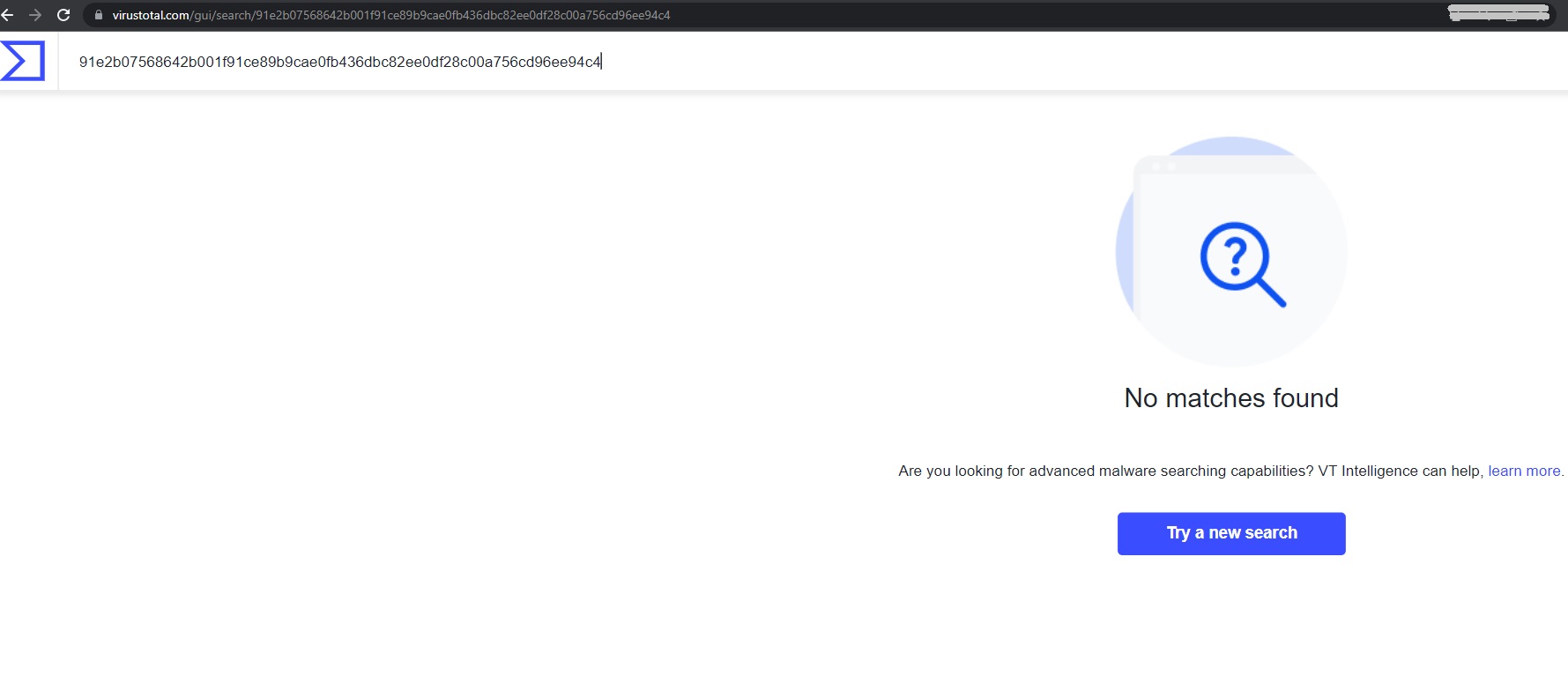 Fig: ScreenShot of no presence of AgentTesla file on VT[/caption]