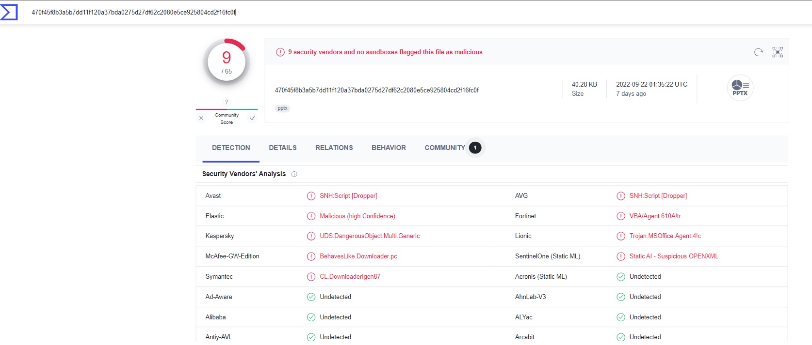 Fig: Less AV's detecting the PowerPoint File[/caption]